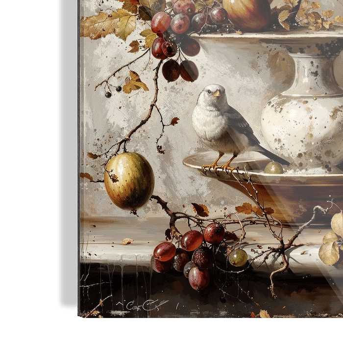 Stilleven met vogels, geïnspireerd door klassieke stillevens, maar dan nu met een moderne twist. Past zowel in een klassiek als modern interieur. Kies zelf het formaat en materiaal voor deze bijzondere blikvanger.