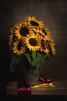 Laat je muren spreken met een verhaal vertellend modern fotografie kunstwerk dat je emotioneel raakt van John van de Gazelle. Want, één beeld zegt meer dan duizend woorden! Creëer met dit prachtig stilleven kunstwerk een oase van rust in je huis. Dit is een prachtig modern stilleven in een klassieke sfeer met zonnebloemen in een aardwerk vaas. Met dit prachtig stilleven kunstwerk probeer ik je het gevoel te geven van rust en symboliseert eenvoud. Het mooie zachte licht maakt het werk schilderachtig mooi en zorgt voor een klassieke sfeer. De zonnebloemen en de bruine aardewerk vaas combineren mooi met de bruine achtergrond voor- en achtergrond. Een bijzonder mooi fotografie kunstwerk van dit prachtig modern stilleven met zonnebloemen. Dit moderne fotografie kunstwerk heeft een minimalistische en serene sfeer. Transformeer je huis of kantoor en voeg een persoonlijke touch toe met dit fraaie moderne fotografie kunstwerk. Want, één beeld zegt meer dan duizend woorden. Het werk is in een staand formaat (portret formaat) en past in veel interieurs van klassiek tot modern. Dit fotografie kunstwerk “Stilleven met zonnebloemen” is een prachtige moderne wanddecoratie voor je lege plek aan de muur te vullen, waarvan je elke dag van blijft genieten. Met dit prachtig modern fotografie kunstwerk creëer je een oase van rust in je huis of op kantoor. Dit moderne fotografie kunstwerk wordt aangeboden door John van de Gazelle Fotografie op Werk aan de Muur. Transformeer je huis of kantoor en voeg een persoonlijke touch toe met dit fotografie kunstwerk. Laat je muren spreken met dit prachtig stilleven en laat je keer op keer verwonderen. Want, één beeld zegt meer dan duizend woorden. John van de Gazelle Fotografie op Werk aan de Muur.