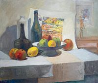 Stilleven met flessen en fruit in het atelier van de kunstenaar te Lebbeke (België) Olieverf op doek - Pieter Ringoot (1921-2011)