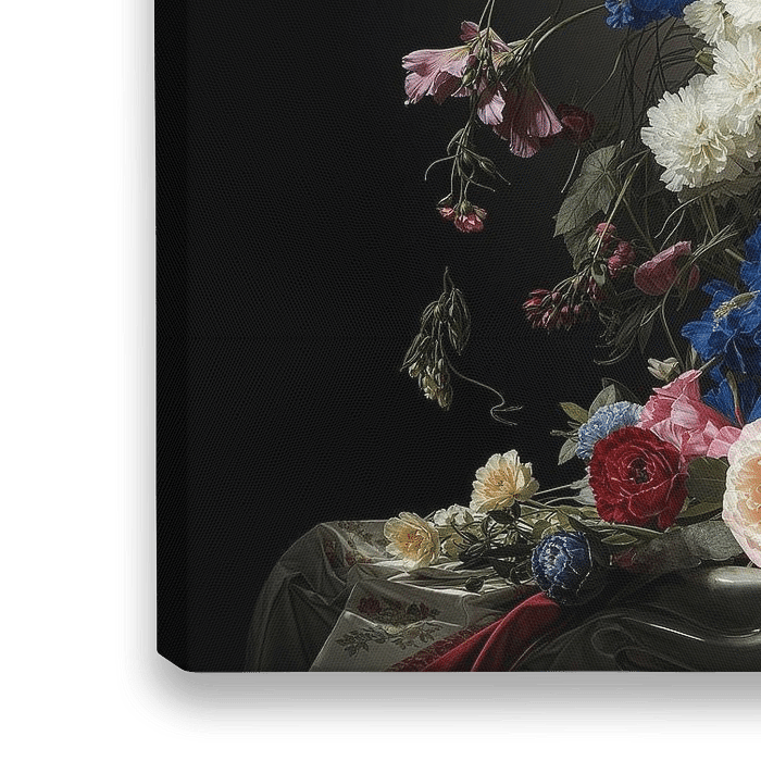 Een betoverend schouwspel ontvouwt zich op het canvas, waar een stilleven tekening van bloemen tot leven komt en de toeschouwer meeneemt op een kleurrijke reis. De bloemen, minutieus weergegeven met fijne lijnen en zorgvuldige penseelstreken, lijken bijna tastbaar in hun weelde.