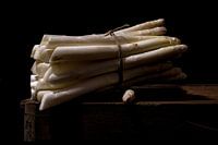 Een stilleven gefotografeerd , geïnspireerd door de oude meester schilder Adriaen Coorte. Het origineel van hem hangt in het Rijksmuseum en toen ik het zag wilde ik het proberen na te maken maar dan niet geschilderd maar gefotografeerd . Het spelen met licht was een uitdaging maar ik vind het resultaat prachtig geworden . Ik vind het een hele leuke bezigheid om stillevens te maken, kijk ook eens bij mijn andere foto's die in mijn shop staan. Asperges zijn een seizoens groente dus toen ze eenmaal weer te koop waren bij de plaatselijke kweker heb ik de mooiste uitgezocht. Het is in principe een eenvoudig beeld, een bosje asperges met een touwtje erom op een oude tafel maar door de eenvoud spreekt het mij enorm aan, en dan net die ene asperge die dwars ligt maakt het speels