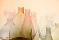 Koop dit stilleven Stilleven van diverse glazen flessen in warme oranje, roze en groene tinten van Birgitte Bergman op canvas, aluminium dibond, (ingelijste) fotoprint, behang en ArtFrame, op maat geprint in Fine-Art kwaliteit.