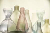 Nast het fotograferen in de natuur, vind ik ook heel leuk om van de door mij gemaakte foto's een nieuw kunstwerk te maken. Op dit kunstwerk zie je een aantal glazen vaasjes en drinkglazen in verschillende kleuren en vormen. Ik heb de vazen op een lightpad gefotografeerd en in Photoshop diverse foto's samengevoegd (meervoudige belichting) tot één foto. Deze heb ik uiteindelijk verder bewerkt met dit als resultaat: Een heel rustig stilleven in fijne, natuurlijke kleuren. Doet het goed in een keuken of woonkamer. Maar ook in wachtkamer of praktijk zal deze mooi uitkomen.