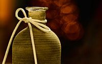 Stilleven van een vaas/fles met een mooie lichtval tegen een donkere achtergrond met een fraai bokeh