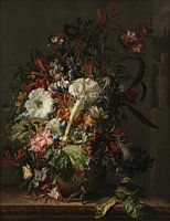 Stilleven van exotische bloemen op een marmeren rand, Rachel Ruysch
