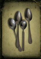Stilleven van lepels op een tinnen achtergrond. Een erg leuke afbeelding om in de keuken aan de muur te hebben hangen maar ook zal deze foto niet misstaan in een eethuis of restaurant samen met de afbeeldingen van messen en vorken. Zie voor meer soortgelijke afbeeldingen mijn shop in WadM.