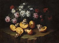 Stilleven van pioenen, geraniums, narcissen en ovuli op een stenen richel, Italiaanse school (1700) Dit Italiaanse stilleven toont een bos bloemen op de achtergrond en op de voorgrond een handvol vers geplukte ovuli, een soort paddenstoel die veel voorkomt in Zuid-Italië. Deze combinatie was vrij gebruikelijk in Italiaanse stillevens in de 17de eeuw, en beide groepen zijn uitgevoerd met naturalistische belangstelling en aandacht voor detail.