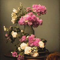 Koop dit bloemen kunstwerk Stilleven van roze en witte bloemen in vintage fotorealisme van Roger VDB op canvas, aluminium dibond, (ingelijste) fotoprint, behang en ArtFrame, op maat geprint in Fine-Art kwaliteit.