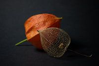 "Stilleven van 2 generaties" is een foto van 2 lampionnen van de lampionplant. De voorste lampion, waar de scherpte op ligt is een geraamte en de vagere lampion op de achtergrond is een nieuwe lampion.