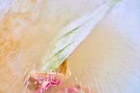 De uitgebloeide bloemen van witte en roze pioenrozen zijn individueel in het water gelegd en enkele dagen diep ingevroren. Bij het begin van het bevriezen zijn de bloemen bewogen om luchtbellen en verschillende ijskristallen te krijgen in het ijs. Tijdens het fotograferen ontdooit de dikke laag ijs om de bloem, ontstaan er voortdurend nieuwe effecten en daardoor andere beelden. Als het ijs gesmolten is, dan is het over en is de foto niet opnieuw te maken. Het is een eenmalig zeer bewerkelijk proces van voorbijgaande aard en daardoor is elke foto uniek. Het is abstracte natuur geworden, stillevens van vervliegend leven.