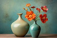 Dit stilleven toont een zorgvuldig gecomposeerde weergave van verschillende objecten, zoals fruit, bloemen en aardewerk. De rijke kleuren en variëteit aan texturen zorgen voor een levendige uitstraling, terwijl het spel van licht en schaduw diepte en dimensionale effecten toevoegt. De harmonieuze samenstelling roept een gevoel van rust en contemplatie op, en benadrukt de schoonheid van alledaagse voorwerpen. Dit schilderij kan een warme en uitnodigende sfeer creëren in elke ruimte, waardoor het perfect is voor liefhebbers van klassieke stillevens en de schoonheid van de natuur.