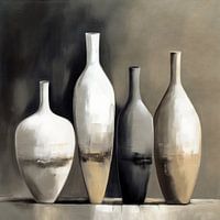 Stilleven met vazen, illustratie in matte bruin tinten.