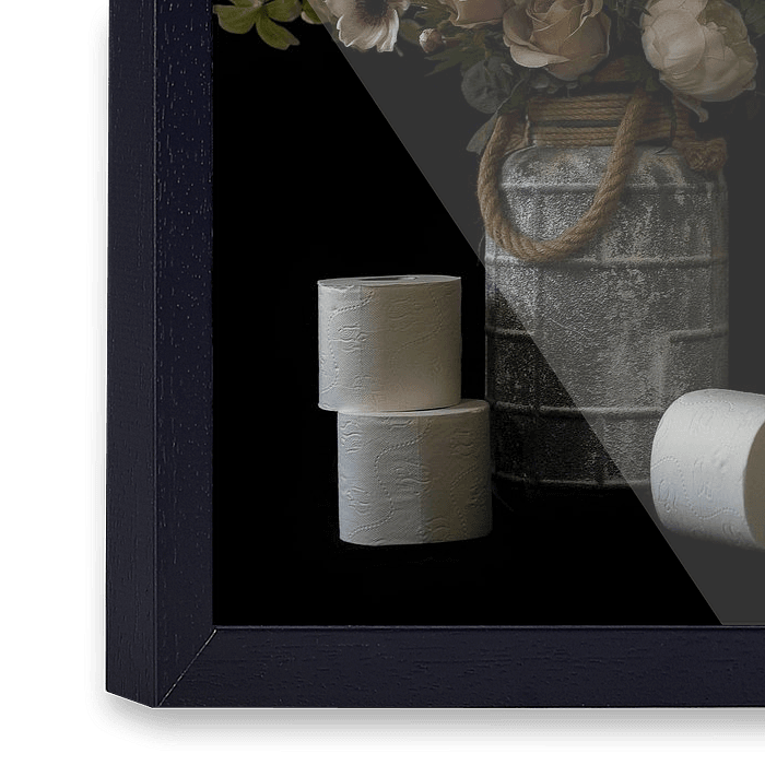 Parodie op het stilleven met wc-rollen