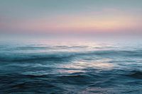 Dit verstilde zeegezicht toont een moment waarop de wereld bijna oplost in kleur en licht. De horizon vervaagt in een zachte nevel, terwijl pasteltonen van roze, blauw en groen zich rustig over lucht en water verspreiden. Een enkele golf rolt kalm naar voren, als een ademhaling die het ritme van de zee voelbaar maakt. Het beeld straalt…