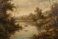 In dit verstilde landschap staat een eenzame vogel aan de waterkant, omringd door zachte aardetinten en een warme, gedempte gloed. Het moment voelt tijdloos: alsof de wereld even pauzeert en alleen het rimpelloze water en het ruisen van de natuur overblijven.