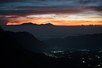 Voordat de zon de horizon passeert, verschijnen Mount Bromo en zijn buren in een lichte mist, gehuld in een oranje gloed. De hemel, getint met rood, paars en goud, kondigt het aanbreken van een nieuwe dag aan in het vulkanische land van Oost-Java. In de nog slaperige vallei flikkeren een paar lichtjes, stille getuigen van menselijk…