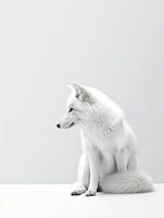 "Stilte in Wit" is een fascinerende artistieke foto die de serene en majestueuze uitstraling van een witte vos vastlegt. De witte tonen van zijn vacht gaan naadloos over in de minimalistische achtergrond, wat een kalme en bijna etherische sfeer creëert. De houding van de wolf, met een naar beneden gerichte blik, voegt een contemplatief…