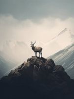 Dit fine art beeld toont een subliem tafereel van een hert op de top van een berg, omgeven door zachte kleuren bruin. De minimalistische benadering benadrukt de rust en sereniteit van het moment. Dit kunstwerk past perfect in een modern, rustiek of Scandinavisch interieur, waar het een gevoel van verheven vrede en verbondenheid met de…