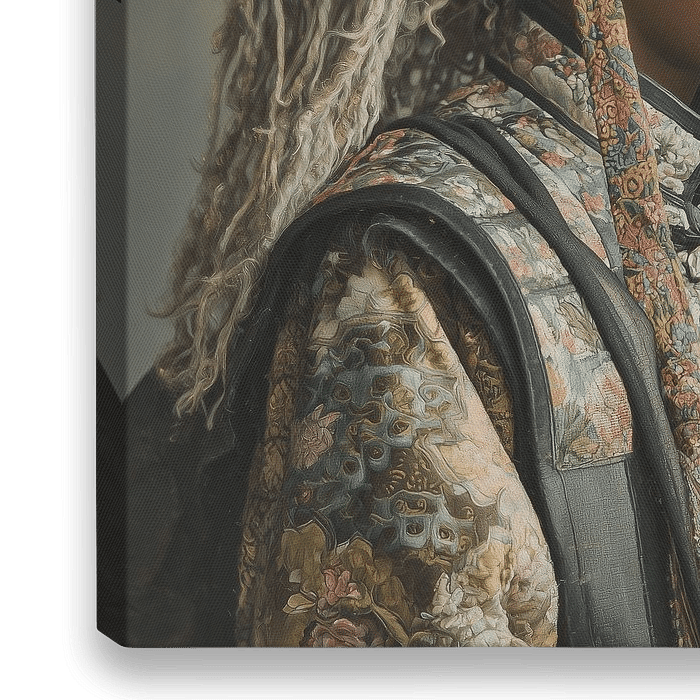 Breng een vleugje mystiek en culturele rijkdom in je interieur met Stilte – een betoverend portret van een jongen in traditionele ceremoniële klederdracht. Deze digitale muurkunst vangt een moment van serene introspectie, versterkt door de rijke texturen van het met de hand bewerkte hoofddeksel en de kleurrijke, symbolische patronen van…