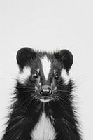 Dit indrukwekkende zwart-wit portret van een stinkdier legt de karakteristieke strepen en doordringende blik van het dier tot in detail vast. De contrastrijke lijnen benadrukken de opvallende verschijning en geven de afbeelding een speciale diepte en aanwezigheid. Dit kunstwerk is perfect voor liefhebbers van dierenfotografie en decoratieve kunst en geeft je woon- of werkruimte een unieke en stijlvolle uitstraling.