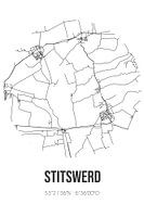 Zwart-witte landkaart, stratenplan of plattegrond van Stitswerd. Stitswerd is gelegen in de gemeente Het Hogeland, provincie Groningen. Op de stadskaart zijn alle openbare wegen in Stitswerd opgenomen. Verder is de kaart voorzien van de coördinaten van het centrum van Stitswerd.