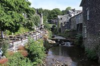 Gezicht op de rivier Stock Ghyll, en de omringende historische gebouwen en molens, terwijl deze door Ambleside stroomt, in het Lake District in Cumbria in Engeland.