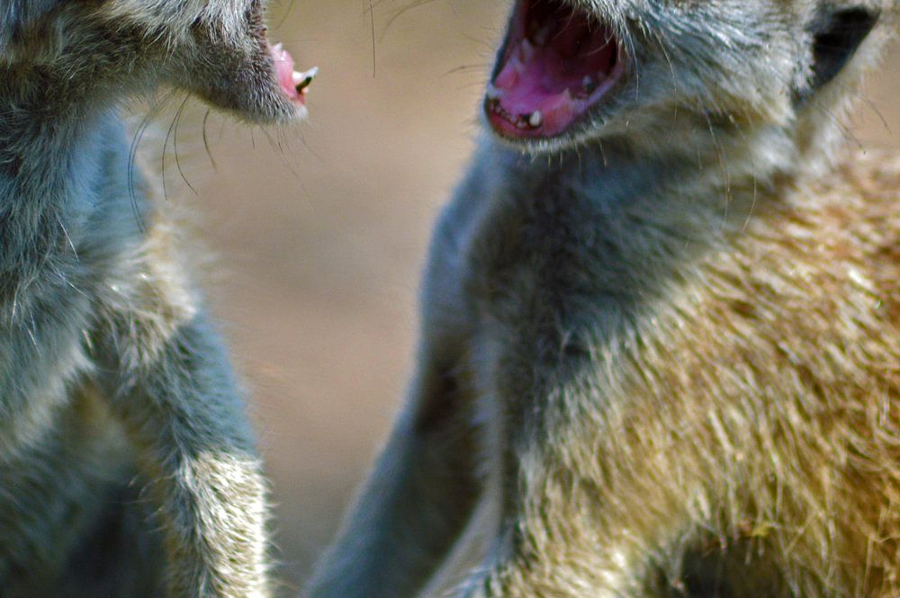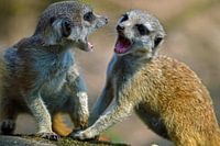 Koop de foto Stoeiende Stokstaartjes van Vicky Janssen als print op canvas, aluminium dibond, (ingelijste) fotoprint, behang en ArtFrame. Voor jou op maat geprint in Fine-Art kwaliteit.