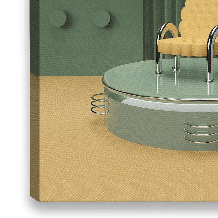 Driedimensionaal (3D) fantasie abstract ontwerp in geel en groen met metaal objecten. Zie ook Wenteltrap.