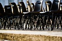 Stoelen op straat in Rome. Ze staan te wachten tot de bezoekers van de dienst Urbi et orbi komen.