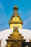 Stoepa van Swayambhunath, Kathmandu. Boven op een heuvel gelegen met een prachtig uitzicht over de stad. De ogen van Boeddha volgen je terwijl je de ommegang maakt.