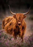 Stoere schotse hooglander in heideveld van By Marjolein Design