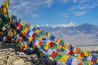 Panorama vanaf de Tsenmoheuvel over Leh en de Indusvallei naar Stok Kangri, 6153m, Ladakh, Jammu en Kasjmir, India, Azië