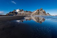 Zwart strand van Stokksnes onder de berg Vestrahorn, ten oosten van Höfn í Hornafirði , IJsland
