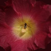 Koop de foto Stokroos met bij van Saskia Schotanus als print op canvas, aluminium dibond, (ingelijste) fotoprint, behang en ArtFrame. Voor jou op maat geprint in Fine-Art kwaliteit.