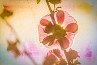 Delicate bloemblaadjes van de stokroos overspoeld met licht