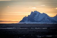 De beroemde Stoksness berg in Oost-IJsland tijdens zonsondergang.