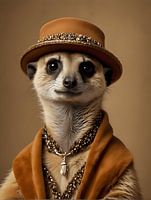 Deze stokstaart houd wel van een beetje anders! Een hoedje op, mooie ketting om en als altijd vriendelijk de wereld in kijkend.