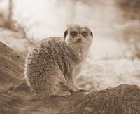 Koop de foto Stokstaartje in sepia. van Jose Lok op canvas, aluminium dibond, (ingelijste) fotoprint, behang en ArtFrame, op maat geprint in Fine-Art kwaliteit.
