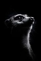 In een betoverend spel van licht en schaduw staart een nieuwsgierig stokstaartje met grote, fonkelende ogen in de verte. Het monochrome kleurenschema versterkt de mysterieuze uitstraling, ideaal voor een woonkamer of creatief kantoor waar het zorgt voor conversatie en inspiratie. Een echte blikvanger die de verbeelding prikkelt!