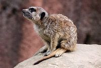 Stokstaartje op de uitkijk,genietend van de zon.Dit portretje heb ik geschoten in Gaia Park Kerkrade. Er zitten meerdere stokstaartjes in dit verblijf, maar deze vindt de zon erg fijn.