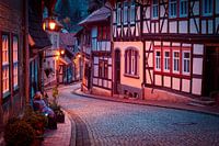 Vakwerkhuizen in Stolberg (Harz) in de schemering