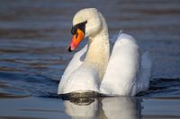 Een knobbelzwaan (Cygnus olor) op een meer in het natuurreservaat Mönchbruch bij Frankfurt, Duitsland.