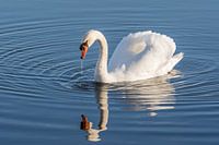 Een bultrugzwaan die na het kabbelen enkele druppels water uit de snavel druppelt...