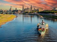 Stoomboot op de Elbe met de skyline van Dresden