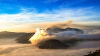 Panorama dampende vulkaan Mount Bromo op Java Indonesië bij zonsopgang
