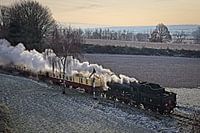 Winters tafereel in het Zuid Limburgse Heuvelland bij Kapolder waar Stoomloc 1040 van de Zuid Limburgse Stoomtrein Maatschappij aankomt in Wijlre.