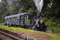 Stoomloc Anna vertrekt van station Wijlre op de 1e rit na een grondige schilderbeurt