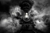 Een majestueus stoomschip komt tevoorschijn uit de dichte, mysterieuze wolk terwijl krachtige dampwolken de lucht in stijgen. De stralende spotlights doorboren de duisternis en verlenen de scène een fascinerende intensiteit. Een sfeer van nostalgie en avontuur omringt elke lijn en elke beweging - het begin van een onvergetelijke reis naar het onbekende.
