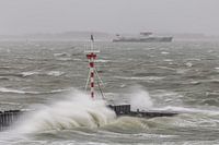 Storm Bella, 27-12-2020, roeiershoofd Vlissingen. Foto is met iets langere sluitertijd genomen om meer van de beweging te laten zien.