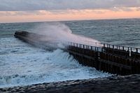 Storm Dennis raast over Westkapelle. Hoge golven en opspattend water. Toch genieten van het geweld want het is ook mooi. Golven slaan kapot op de pier